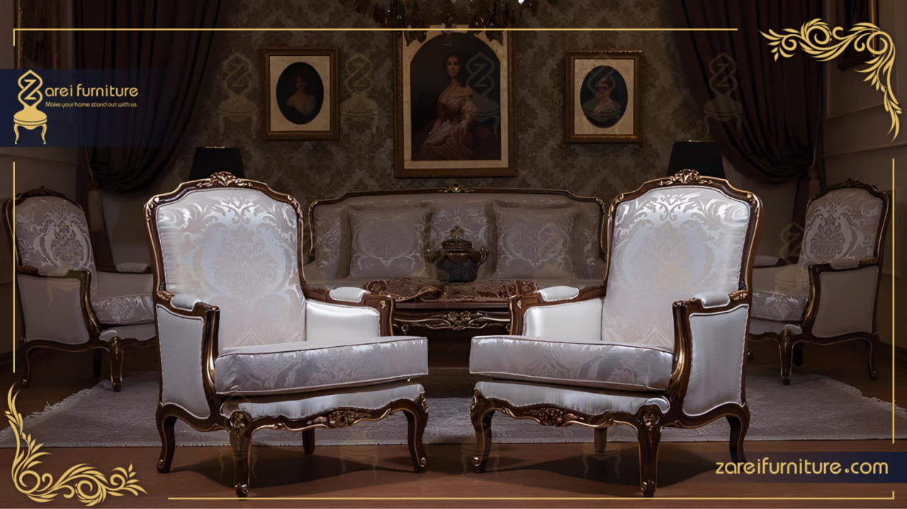 توضیحات : كنبة “فرنسية بزهرتين” من مفروشات زارعی تمثل تعبيرًا عن الرقي الكلاسيكي. تتميز بنحت يدوي لزوج من الزهور على إطار خشبي من خشب الزان، وتتوفر بنسختين: قاعدة ثابتة أو مرتبة مزدوجة. مثالية للديكورات الفاخرة، توفر راحة عالية وجودة تدوم طويلاً. يمكنك طلبها كمجموعة كاملة من 7 أو 9 مقاعد أو نصف طقم حسب اختيارك.